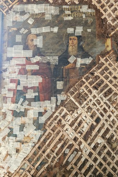 Тогда проводились работы по укреплению колокольни, устанавливались страховочные и подъемные стойки из брёвен по южной стене первого яруса, был зафиксирован переход от первого яруса ко второму с помощью скользящих закладок-брусков и сделан подъём до исправления наклона верхней части колокольни и нормального сопряжения ярусов. Художники-реставраторы из академии А.Л.Штиглица в Петербурге провели работы по обследованию живописи и провели пробные методы консервации.